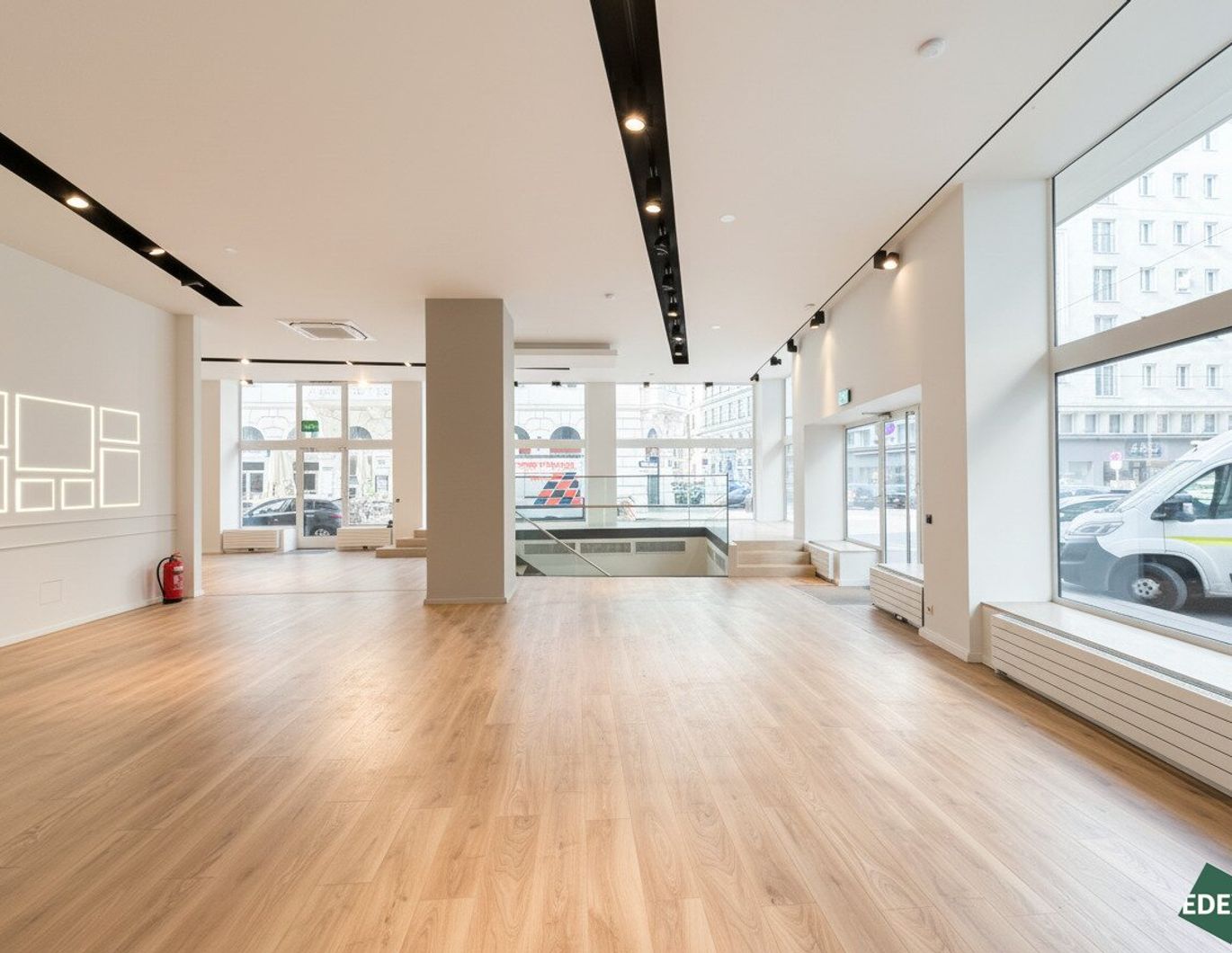 Darüber hinaus verfügt die Fläche über eine zeitgemäße technische Ausstattung, darunter schwenkbare Deckenstrahler und Spotbeleuchtung, eine strukturierte EDV-Verkabelung inklusive Server sowie eine Kühlung. Die Beheizung erfolgt über eine Hauszentralheizung mittels Fernwärme.