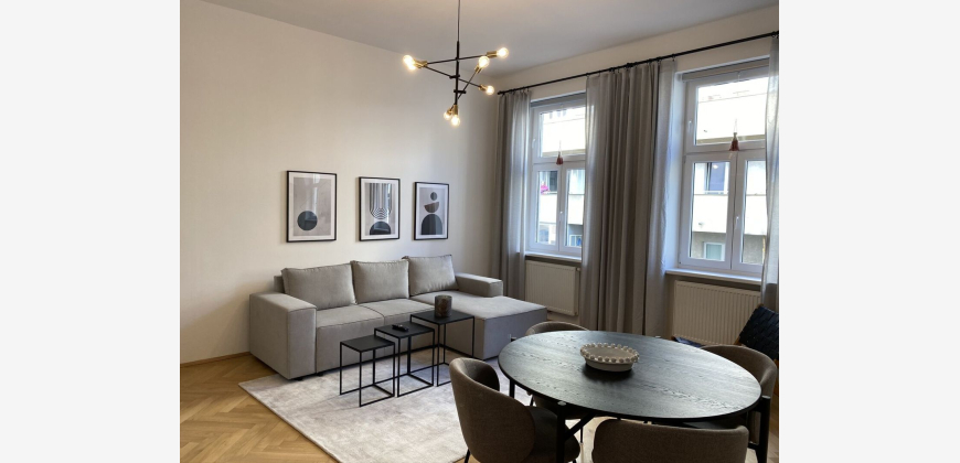 dar. Die Wohnung wird vollmöbliert vermietet und ist somit direkt bereit für den Einzug. Einfach Kofferpacken und Einziehen! Die Wohnung ist aufgrund ihrer Ausrichtung im Gebäude sehr ruhig und uneinsichtig. Das Bad ist stilvoll verfliest sowie die Haupträume mit einem edlen Fischgrätparkett versehen.