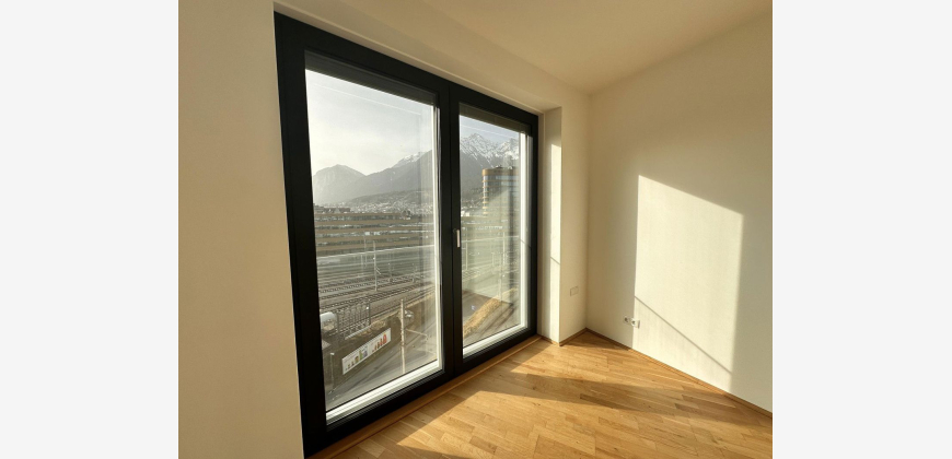 Direkt am Hauptbahnhof und Einkaufszentrum Sill-Park. Wunderbare Verkehrsanbindung und alle Geschäfte für den täglichen Bedarf im direkten Umfeld. Blick über die Stadt in die Berge und auch auf die Nordkette. Stadtbibliothek ist unten im Haus.