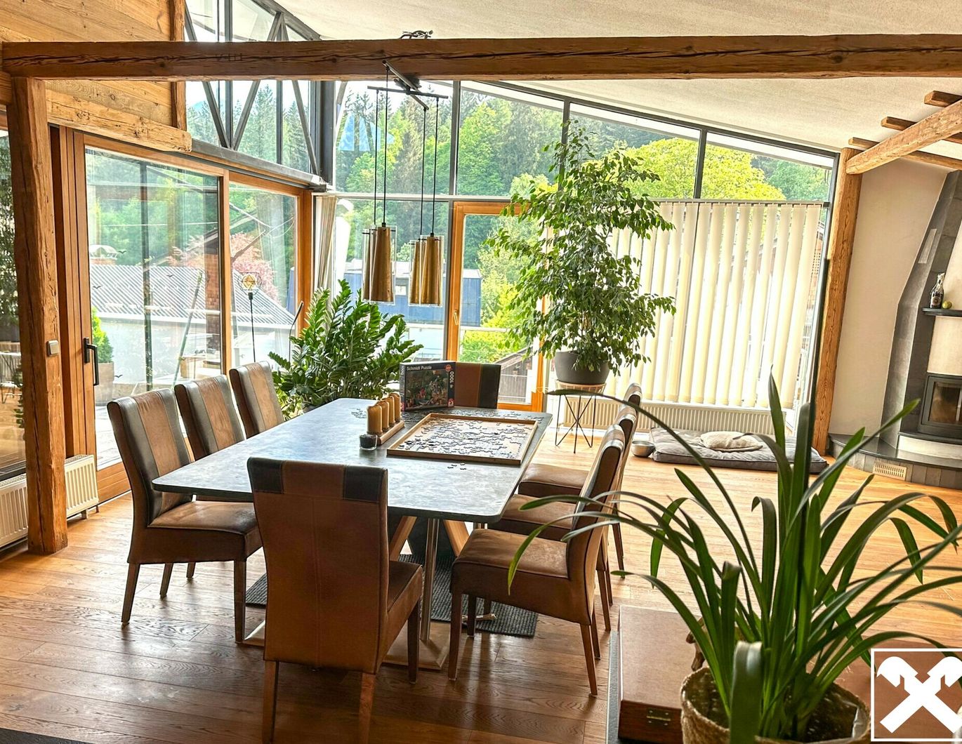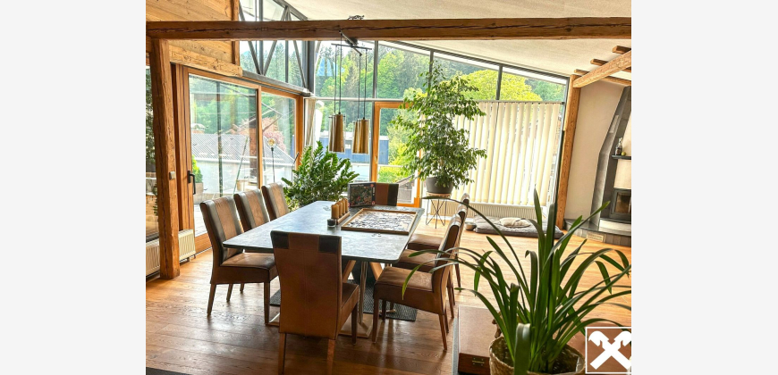 Durch die voll ausgestattete Küche und dem großen Esstisch ist diese Wohnung ein Traum für Menschen die gerne Kochen und Gäste einladen. Für die Romantik gibt es einen modernen Kaminofen mit Sichtfenster.