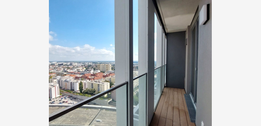 In einzigartiger Lage, direkt bei der U1-Station Kagran und vis-à-vis vom Donau Zentrum, entsteht ein exklusiver, ca. 155m hoher Wohnturm mit 45 Etagen. Die insgesamt 347 Mietwohnungen bieten einen vielfältigen Wohnungsmix: von smart geschnittenen 1,5-Zimmer-Apartments ab ca. 38 m² über komfortable 2-Zimmer-Wohnungen bis hin zu großzügigen 3- und 4-Zimmerwohnungen mit bis zu ca. 80 m².