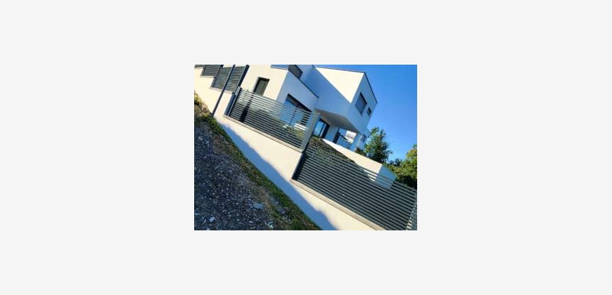 Energieeffiziente Luftwärmepumpe mit Fußbodenheizung, dreifach verglaste Kunststoff-Alu-Fenster mit Sonnenschutz, hochwertige Bauweise mit Vollwärmedämmung.