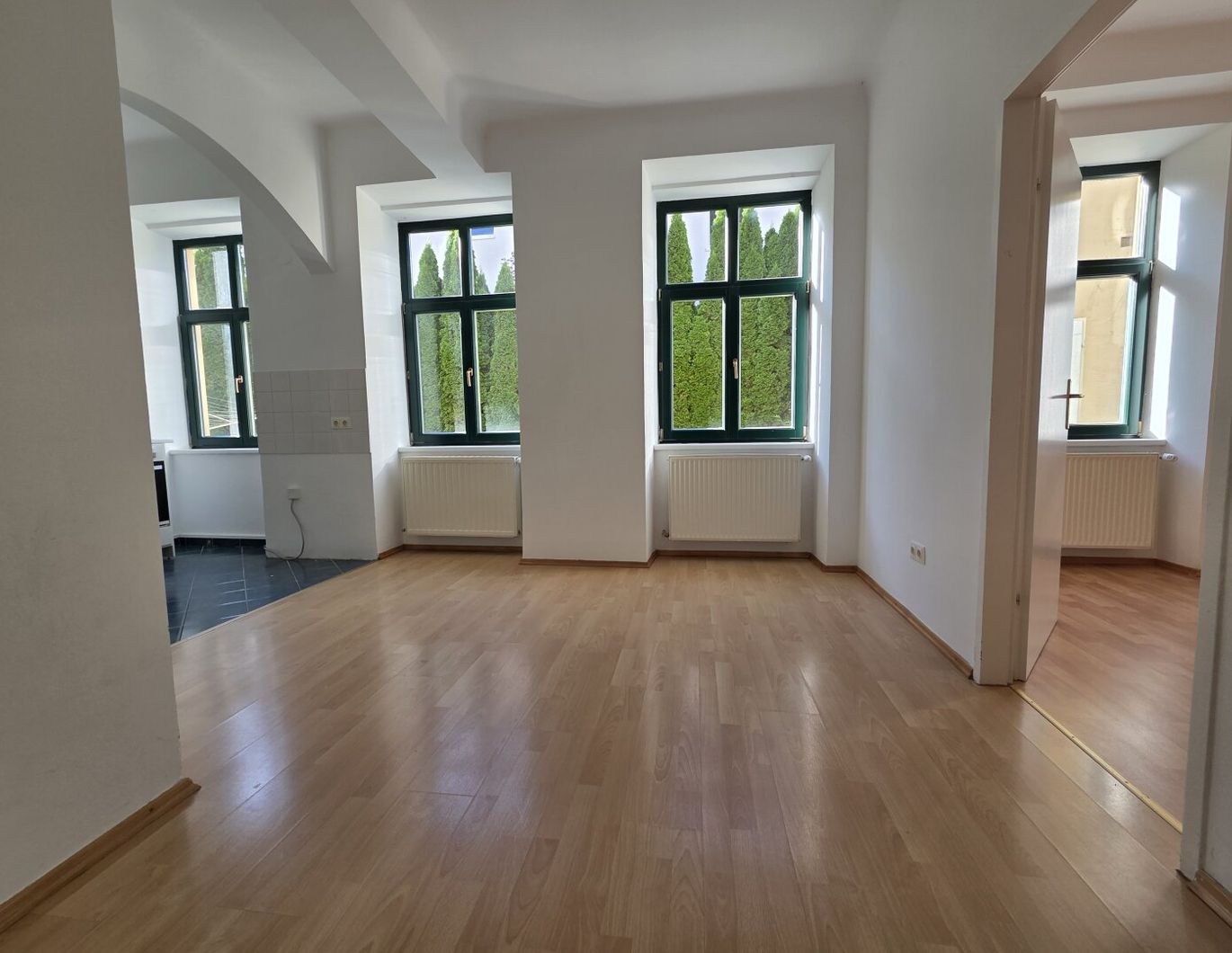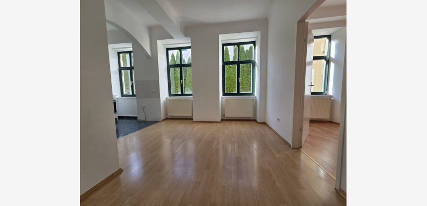 Zur Vermietung gelangt eine helle, rund 52 m² große 2-Zimmer-Wohnung im Erdgeschoss. Aufteilung: