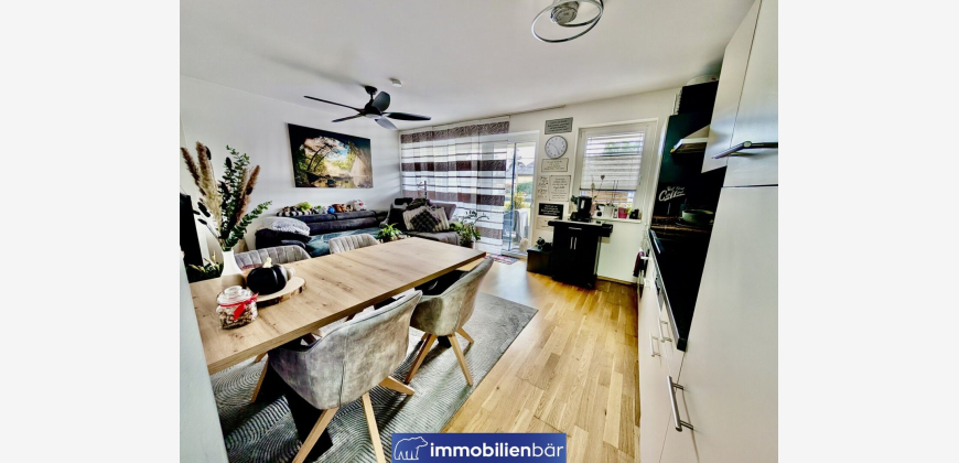 Top 6 im EG mit 66,68m² Wohnfläche verfügt über 3 Zimmer und hat eine großzügige Terrasse .