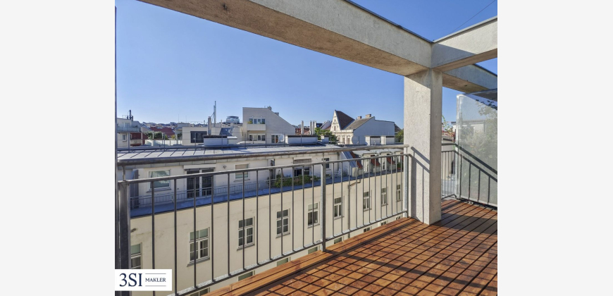 mit sehr guter Anbindung an das Wiener Stadtleben. Die Wohnung befindet sich in einem Top-Zustand und besticht durch die moderne und hochwertige Ausstattung. Der edle Eicheparkettboden sorgt für eine warme Atmosphäre in den Wohnräumen, das großzügige Bad ist mit hochwertigen Materialien ausgestattet und verfügt über eine moderne Dusche. Der schöne Ausblick über die Dächer Wiens und der komfortable Zugang zur Terrasse machen diese Wohnung zu einem besonderen Wohnjuwel. Ideal für Paare und Singles, die eine außergewöhnliche Immobilie suchen. Die Wohnräume sind Richtung Süd-Ost, die Terrasse in den Innenhof Richtung Nord-West ausgerichtet. Haus und Umgebung Dieser schöne Stilaltbau wurde soeben teilsaniert und bietet ein wunderschönes Entrée, ein klassisches Stiegenhaus und einen charmanten Innenhof. Das Gebäude verfügt über ein ausgebautes Dachgeschoß, 3 Regelgeschoße, ein Erdgeschoß und ein Kellergeschoß. Das Wohnprojekt befindet sich in sehr guter, beliebter und zentraler
