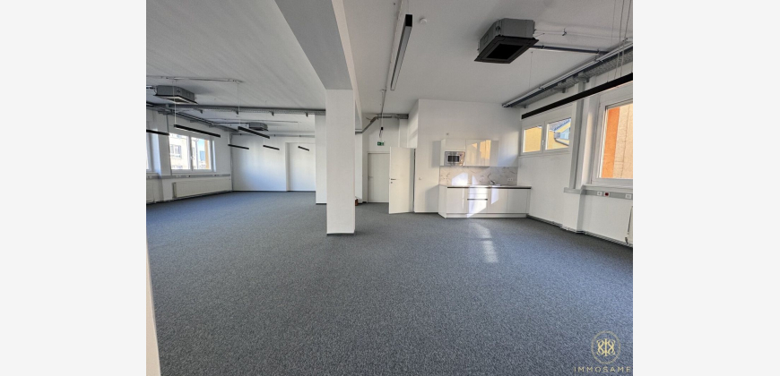 165qm können ideal für Ihren neuen Bürostandort genutzt werden. Der großzügige Raum ist geschickt aufgeteilt durch Ecken, Trennwände und somit offen für Ihr Konzept. Das Gebäude allgemein bietet einen modernen, offenen Eingangsbereich, in dem sich Kunden gut aufhalten können. Zusätzlich besteht die Möglichkeit einen Seminarraum im EG jederzeit (nach Reservierung) zu nutzen. Das Büro selbst liegt im 3. OG und ist mit dem Aufzug zentral begehbar. Insgesamt ist der Standort äußerst attraktiv: Direkt am Waldmüllerpark gelegen, bietet er Erholung in der Mittagspause und ist keine 8 Autominuten vom Hauptbahnhof entfernt. Öffentlich erreicht man das Büro bequem über den Matzleinsdorfer Platz (8 Min.) oder Kliebergasse (6 Min.). Ihr neuer Standort wartet auf Sie! Zusammengefasst: Bauteil 2/ Büro 3. OG/ 3.2: 165,00qm für  2.145,00€ ( 13€/qm) zzgl. 536,25 BK (3,25€/qm) zzgl. Klimakosten  Neben diesem Gewerbeobjekt stehen in dem selben Gebäude folgende Flächen zur Vermietung:Â