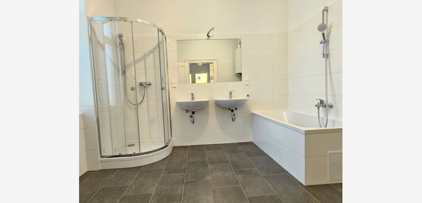 Die 3-Zimmerwohnung mit ca. 125 m² besteht aus: Vorraum, WC mit Fenster, zwei Abstellräume, Badezimmer mit Badewanne, Dusche und Fenster, 2 Schlafzimmer, getrennte Küche und sehr große Wohnzimmer. Die Wohnung ist Erstbezug nach Sanierung (siehe Bilder und Video) Die Wohnung befindet sich 4.OG ohne Lift