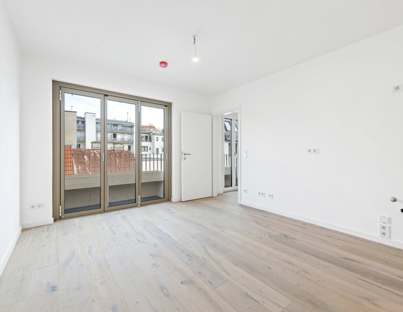 ZUR WOHNUNG TOP 23 : Nach dem Betreten der 31,51 m² großen 2-Zimmer-Wohnung befindet man sich im offen gestalteten Vorraum, welcher idealen Platz für eine Garderobe, oder einen Schrank bietet. Die angeschlossene Wohnküche mit 16,49 m² bietet viel Licht dank bodentiefen faltbaren Fensterflächen. Hier lassen sich eine Couch und ein gemütlicher Essbereich wunderbar einrichten. Ein zeitloser Küchenblock mit Hängeschränken und sämtlichen Geräten ist selbstverständlich Teil der Ausstattung. Neben dem Eingangsbereich liegt das moderne Badezimmer mit fast 5 m² Größe, welches mit einer Duschkabine, einem Handwaschbecken, einer Toilette und einem Waschmaschinen-Anschluss ausgestattet ist. Das freundliche Schlafzimmer nebenan weist eine kompakte Größe von etwa 10,30 m² auf, es ist dennoch ideal aufgeteilt, um wunderbar ein Doppelbett sowie einen großen Schrank platzieren zu können. Vom Wohnzimmer sowie vom Schlafzimmer aus ist ein Gesimse mit Blumentrögen zu begehen.