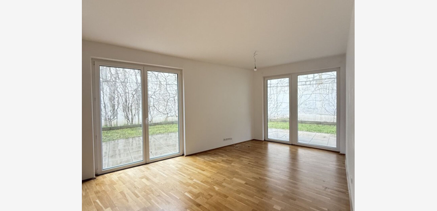 Zur Vermietung gelangt eine schöne 3-Zimmer-Gartenwohnung in ruhiger Wohnlage. Die lichtdurchflutete Wohnung befindet sich im 1.Stock und verfügt über einen Vorraum, einen Abstellräum mit Waschmaschinenanschluss, ein separates WC, ein modernes Badezimmer mit Badewanne und Waschbecken, eine großzügige Wohnküche inkl. Geräten sowie zwei Schlafzimmer. Über das Wohnzimmer hat man Zugang zu einem ca. 135 m2 großen Garten. Die Fenster sind mit Raffstores/außenliegenden Sonnenschutz ausgestattet. Die Wohnräume sind mit Parkettböden und die Nassräume sind mit eleganten Fliesen ausgestattet. Im Haus befinden sich Kinderwagen- und Fahrradabstellräume sowie eine Tiefgarage in der Stellplätze angemietet werden können. Die Wohnungen stehen ab Dezember zur Verfügung und werden auf 3 Jahre befristet vermietet.