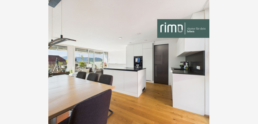 und hochwertige Ausstattung. Genießen Sie die Vorzüge einer offenen Wohnküche, die nahtlos in den Wohnbereich übergeht und ein harmonisches Familienleben fördert. Die großen Fenster durchfluten die Räume mit natürlichem Licht und bieten Ihnen gleichzeitig einen atemberaubenden Ausblick auf die umliegenden Berge. Hier können Sie nach einem langen Tag entspannen und die Schönheit der Natur in vollen Zügen genießen. Zudem erwarten Sie hochwertige Materialien wie Fliesen und Parkett, die nicht nur stilvoll, sondern auch pflegeleicht sind. Die Fußbodenheizung sorgt in der kalten Jahreszeit für ein angenehmes Wohnklima und höchsten Komfort. Ein Highlight dieser Immobilie ist der Südwestbalkon , der ideal für entspannende Stunden im Freien ist. Genießen Sie den Sonnenuntergang über den Bergen und lassen Sie den Tag in ruhiger Atmosphäre ausklingen. Die großzügige Terrasse lädt zudem zu geselligen Abenden mit Freunden und Familie ein. Praktische Annehmlichkeiten wie eine Garage und ein Personenaufzug runden das Angebot ab und garantieren Ihnen einen stressfreien Alltag. Die