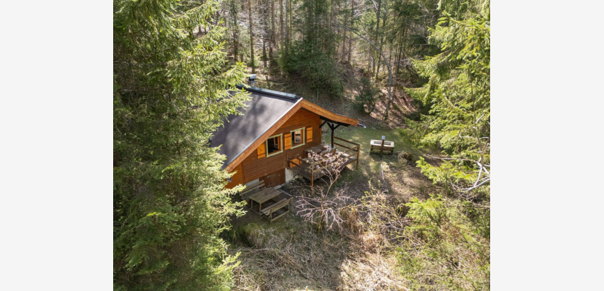 Ausstattung : Die Hütte beinhaltet eine kleine Küche, ein großes Wohnzimmer mit Holzofen und offenem Kamin, drei Schlafzimmer sowie ein Bad mit Dusche. Internet mittels Glasfaseranschluss möglich.
