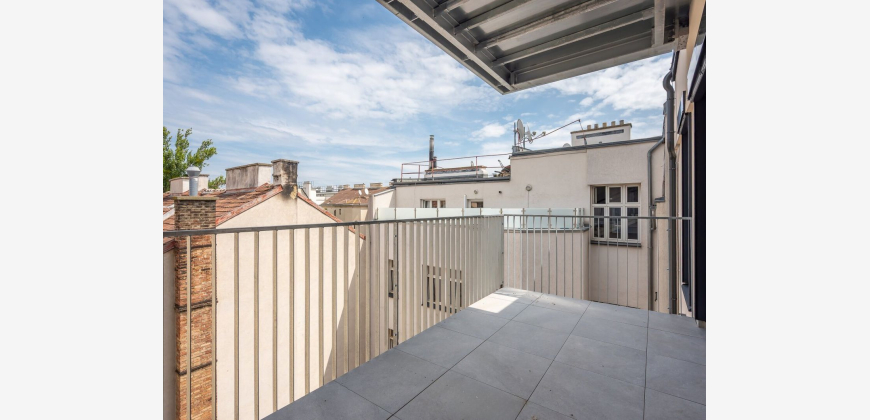 The kitchen will be installed at the landlord's expense. For rent is a newly built approx. 70 m² 3-room apartment with balcony in a well-maintained period building. The apartment is located on the 1st attic floor and is offered as a first occupancy.
