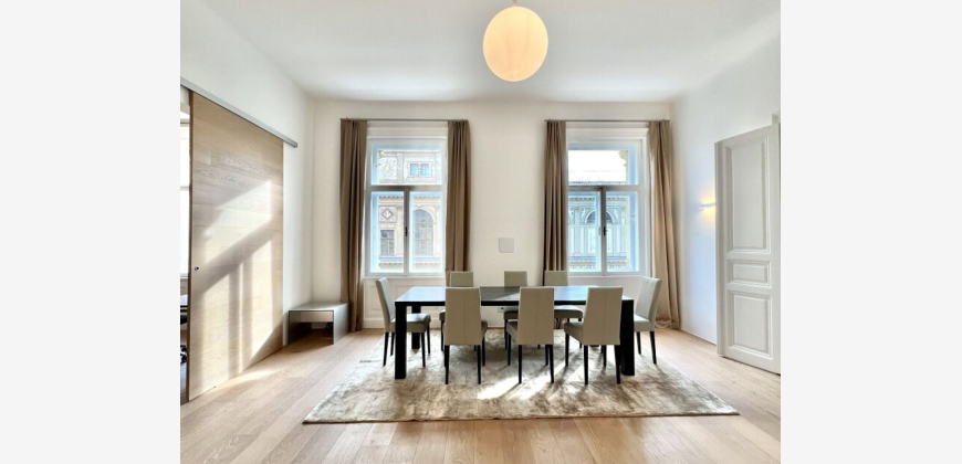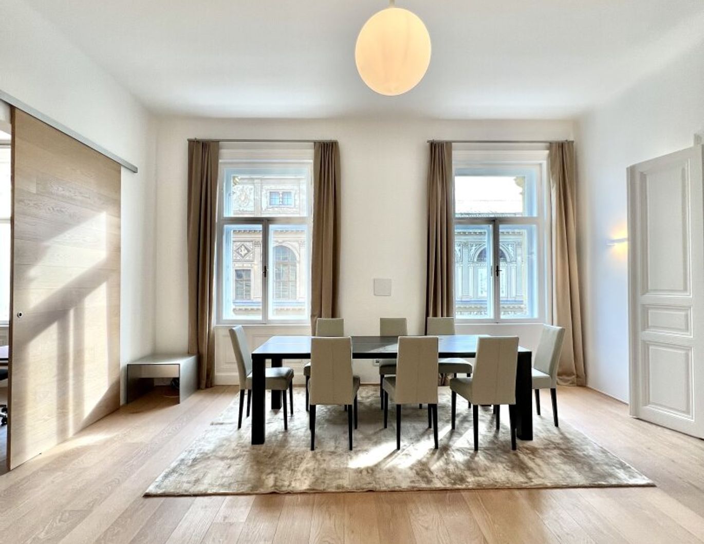 Eine perfekte Mischung aus traditionellem Wiener Flair, moderner Ausstattung und gediegener Eleganz bietet diese prachtvolle Altbauwohnung im 4. (obersten) Obergeschoß eines historistischen Arkadenhauses aus dem Jahr 1881. Von den hohen, schönen Fenstern genießen Sie einen herrlichen Ausblick auf die Fresken an der Fassade der Universität. Die Wohnung ist hell und sonnendurchflutet und hat kein vis à vis. Die Wohnung wurde vor wenigen Jahren generalsaniert und wird mit einer Klimaanlage, 2 Schlafzimmern, 2 Top-Bädern und moderner Möblierung vermietet.