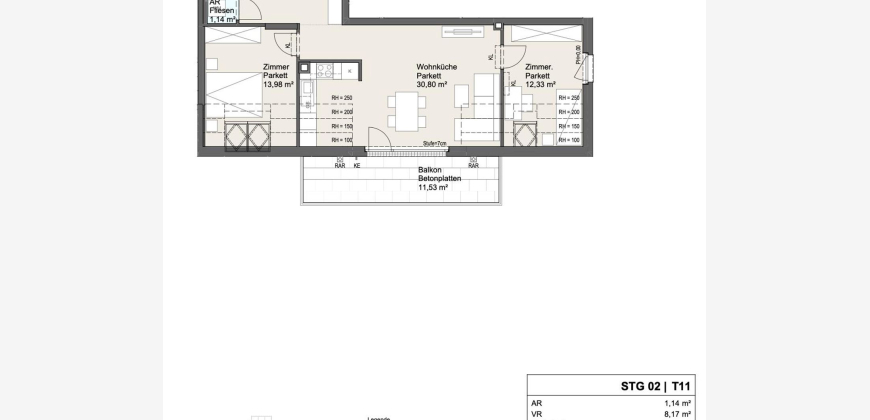 Stg. 2 Top 11 | 3 Zimmer | ca. 73 m² + ca. 12 m² Balkon