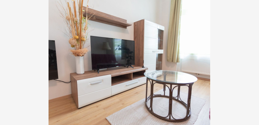 Wohnen auf Zeit für Projektmitarbeiter, Gastprofessoren, etc. Diese Wohnung ist hell und freundlich und befindet sich in einem Jugendstil-Haus mit ca. 3 m Raumhöhe: Es ist eine 2-Zimmer-Wohnung mit Nebenräumen. In einem Zimmer befinden sich die Küchenzeile, der Esstisch, das Sofa und ein Wandverbau mit Fernseher. Ein elektrisches Kaminfeuer sorgt für eine behagliche Stimmung. Im Duschbad befindet sich ein Waschbecken mit Spiegelschrank. Im gartenseitigen Schlafzimmer gibt es ein Doppelbett und einen Kasten. Weiters gibt es einen großzügiges Vorzimmer und dort einen Abstellbereich und ein separates WC. Es sind Waschmaschine, Geschirrspüler, Haushaltsbasics, Geschirr, Pfannen, Töpfe, etc. vorhanden. Für Gas und Strom macht jeder Mieter selbst einen Vertrag mit dem Anbieter und zahlt so nur, was wirklich konsumiert wird. Es gibt einen netten Garten zur Mitbenützung. Haustiere sind nicht erlaubt. Mietdauer mind. 3 Monate, max. 6 Monate. Anfragen Mo.