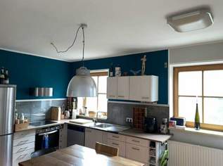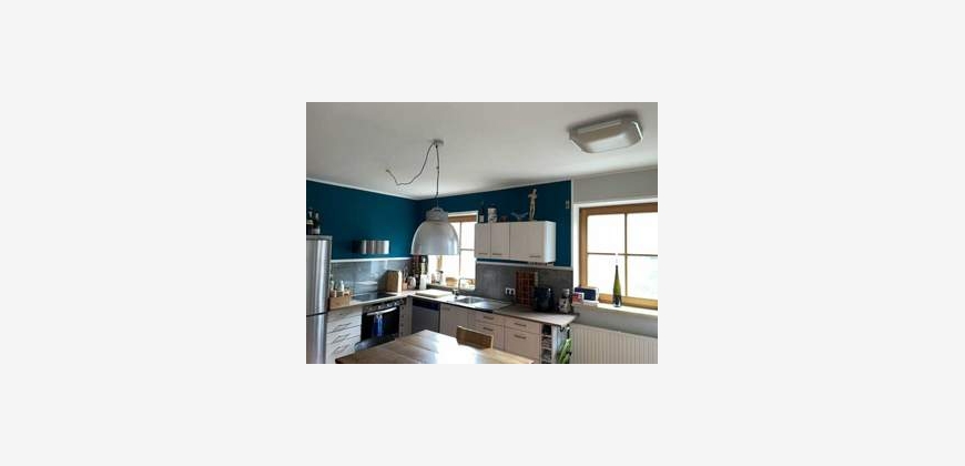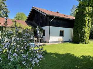 Die Küche verfügt über einen praktischen Vorratsraum und ist durch zwei Fenster sowie eine Terrassentür besonders lichtdurchflutet. Im Wohnzimmer sorgt ein Schwedenofen für eine gemütliche Atmosphäre. Von Küche und Wohnzimmer aus gelangt man direkt auf die überdachte Terrasse. Der weitläufige Garten mit gewachsenem Baum- und Strauchbestand bietet viel Raum für individuelle Gestaltung – ob Gärtnern, Entspannen oder einfach Natur genießen. Eine zweite, sonnige Terrasse lädt zu geselligen Grillabenden ein.