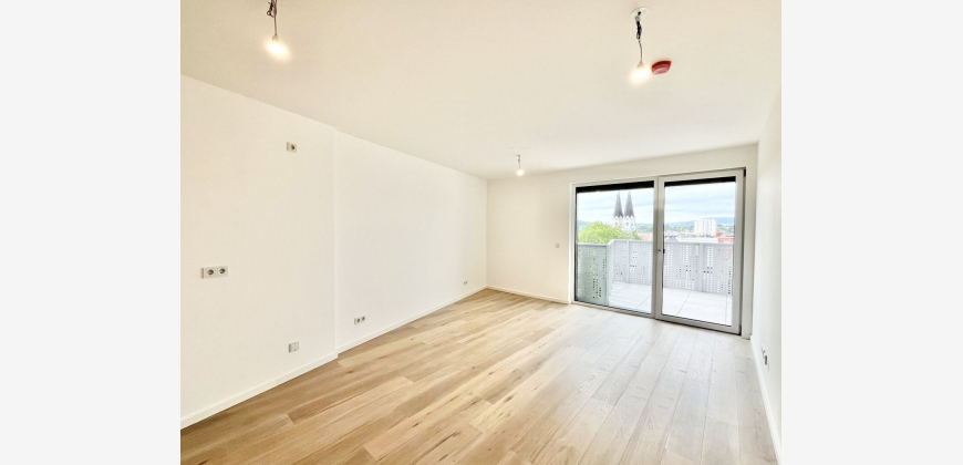 Hier geht´s zum 3D Rundgang Die wunderschöne Balkonwohnung TOP 16 bietet traumhaften Fern- / Grünblick und liegt im 4. Liftstock des modernen Neubaus. Sie ist nord + südseitig ausgerichtet und daher sehr ruhig. Angenehmes Raumklima durch die Fußbodenheizung via Luftwärmepumpe.