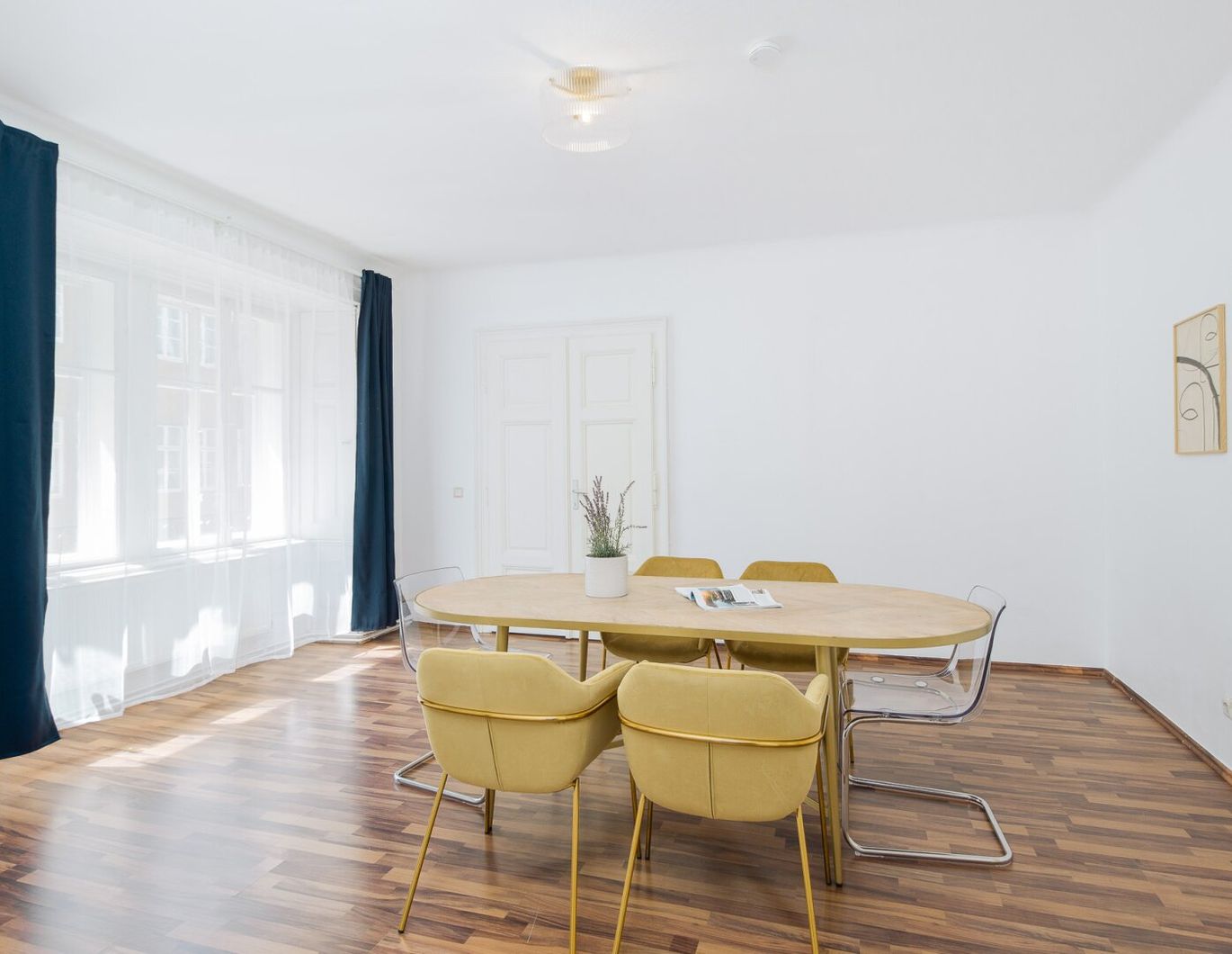 Voll möblierte 4-Zimmer-Wohnung! Einziehen und wohlfühlen! Die Geschichte des Hauses Die denkmalgeschützte Biedermeierliegenschaft mit josephinischer Fassade und charmantem Pawlatschengang im Innenhof befindet sich in der Ballgasse, einer feinen, ruhigen Fußgängerzone mitten im Herzen der Wiener Innenstadt. Die Ballgasse 6 trägt den Namen "Zum alten Blumenstock" und ist ein bemerkenswertes Zeugnis der Bau- und Wohnkultur vom Spätmittelalter bis zum späten 18. Jahrhundert und Ort einer der traditionsreichsten Gaststätten Wiens. Das Haus, welches vor dem heutigen hier stand, war im Besitz der Klosterfrauen "Zur Himmelspforte". Nachdem das Kloster aufgehoben wurde, wurde es um 1784 herum neu gebaut. 1825 waren die Besitzer die Bankiersfamilie Geymüller. Im Kellergeschoß sind bis heute noch Teile des Klosters erhalten. Im heurigen Jahr wird die Fassade saniert. Grundriss Top 17 Die Wohnung befindet sich im 3. Liftstock, verfügt über rund 94 qm und ist hof- sowie straßenseitig ausgerichtet. Die Raumhöhe beträgt ca. 2,77 m. Die gelungene