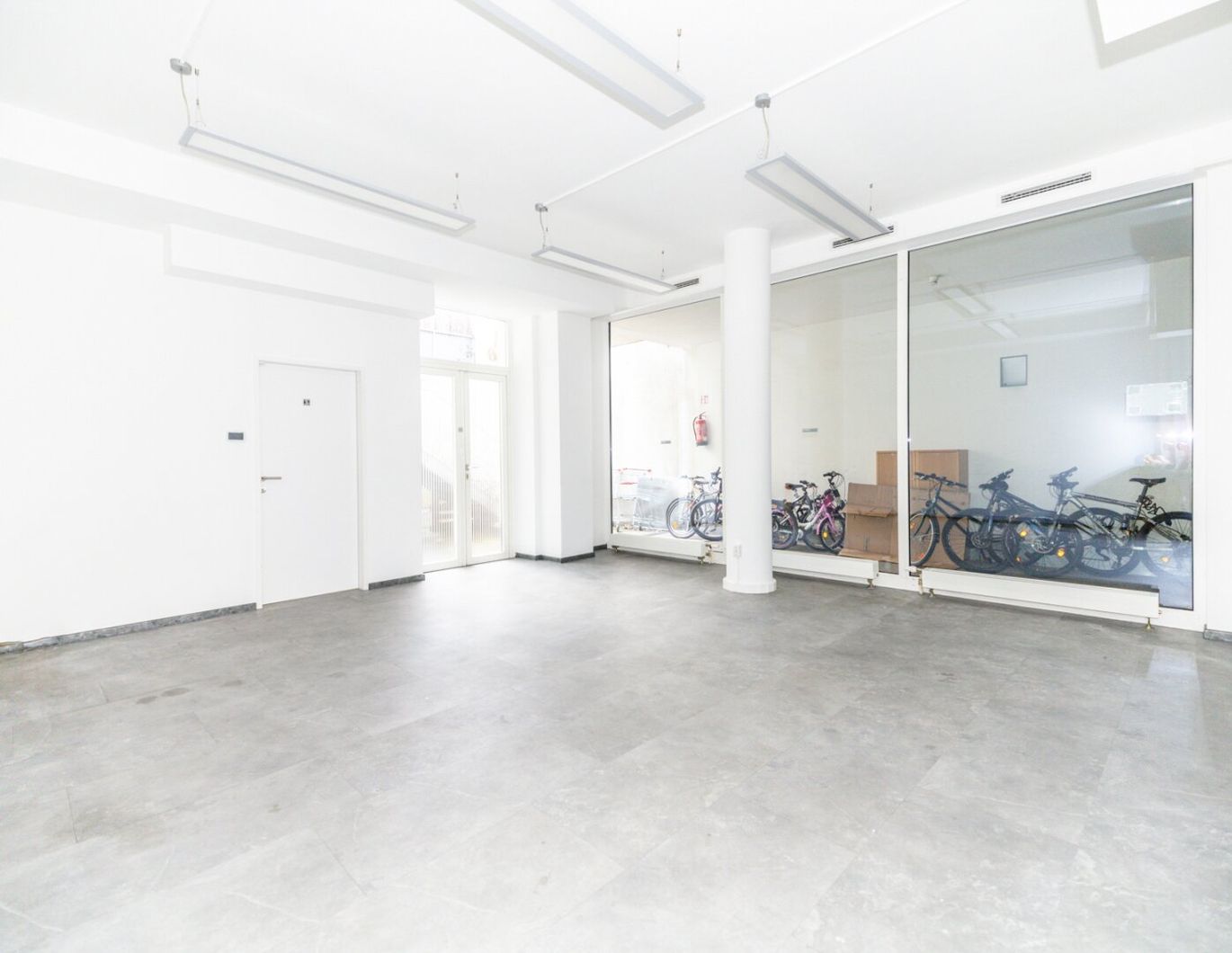 Die Immobilie befindet sich im Erdgeschoss eines historischen Altbaus und bietet durch zwei separate Eingänge eine flexible Raumaufteilung. Der erste Raum, mit direktem Zugang von der Straße, profitiert von der hohen Fußgängerfrequenz und eignet sich hervorragend als Verkaufsfläche oder Ausstellungsraum. Der zweite Raum, ruhig zum Innenhof gelegen, bietet eine ideale Ergänzung für Bürozwecke oder Lagerflächen.