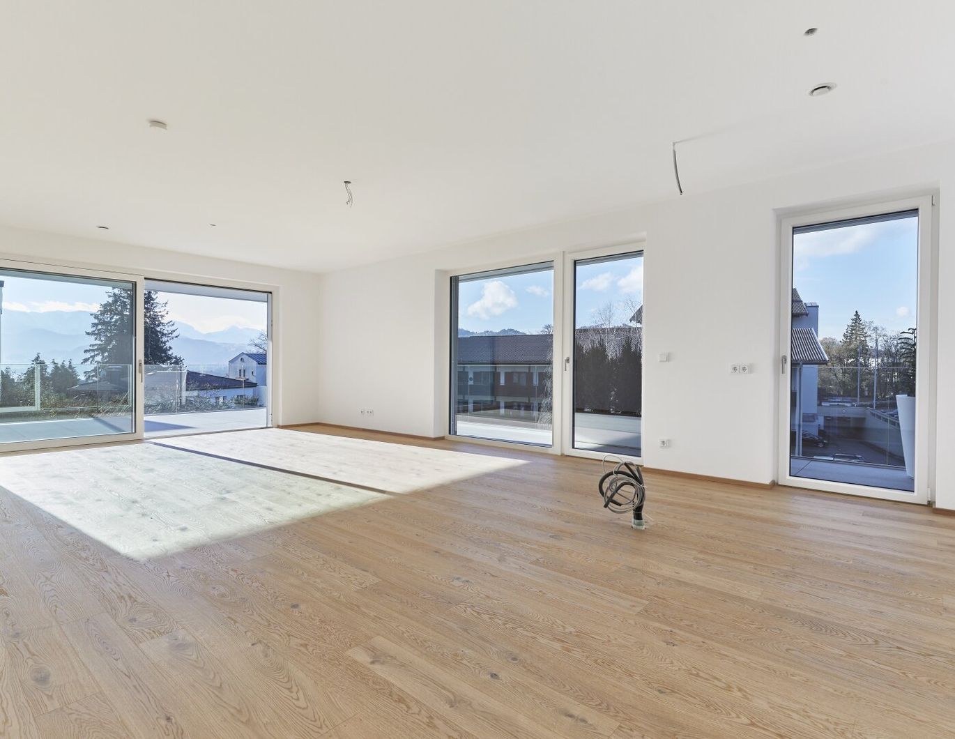 Sorgfältig in den Hang gebaut, bietet es Ihnen einen ruhigen Rückzugsort in Ihrer neuen Wohlfühloase. Das Objekt umfasst 6 Wohneinheiten, aufgeteilt auf 4 Geschosse. Ihre neue Traumwohnung befindet sich im 1. Stock, welche Sie ganz bequem und barrierefrei mit dem Aufzug erreichen können. Der edle Eichenparkett, welcher sich durch Wohn- und Schlafräume zieht, lässt Sie mit eleganz durch Ihre neue Wohnung schweben. Die Fußbodenheizung mit Einzelraumregelung und kontrollierte Wohnraumlüftung mit Wärmerückgewinnung sorgt für den perfekten Ausgleich bei kalten Wintern oder Sommerlichen Temperaturen. Ein Kronjuwel der Wohnung ist die 35,24m 2 große Terrasse , welche Ihnen einen weitreichenden Blick auf das See- und Bergpanorama des Salzkammerguts bietet. Für optimale Privatsphäre sorgt Ihr Outdoor-Vorhang , der sich durch eine durchegehenden Schiene perfekt an die Brüstung schmiegt. Das Badezimmer überzeugt mit feinster und modernster Ausstattung