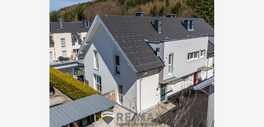 in der Gemeinde Klausen-Leopoldsdorf, nur etwa 20 Autominuten von der Wiener Stadtgrenze entfernt. Die Immobilie eignet sich ideal für Familien oder Paare, die naturnah wohnen und gleichzeitig eine gute Anbindung an die Stadt genießen möchten. Bereits beim Betreten des Hauses empfängt Sie ein einladendes Vorzimmer, von dem aus alle wesentlichen Bereiche des Erdgeschosses erreichbar sind. Hier befinden sich eine großzügige Toilette mit Fenster sowie ein praktischer Abstellraum mit integriertem Wäscheschacht und direktem Zugang zum Keller. Das Herzstück des Hauses bildet der lichtdurchflutete Wohn- und Essbereich, der durch unterschiedliche Bodenbeläge optisch strukturiert ist. Von hier aus gelangen Sie direkt in die hochwertig ausgestattete DAN-Küche mit modernen NEFF-Geräten, durchdachten Stauraumlösungen und zahlreichen funktionalen Details. Ein besonderes Highlight ist die großzügige, rund 25 m² große Terrasse, die vollständig überdacht und mit hochwertigen Terrassenfliesen ausgestattet ist. Sie ist sowohl vom Wohnbereich aus zugänglich und bietet ausreichend Platz für eine Lounge- sowie Essgarnitur. Zwei Dachflächenfenster sorgen für zusätzliches Tageslicht und schaffen eine angenehme Atmosphäre. Der angrenzende Garten überzeugt mit ausreichend Grünfläche, einem praktischen Geräteschuppen sowie einem neu installierten Wasseranschluss. Der im Jahr 2021 errichtete Stabmattenzaun sorgt für Privatsphäre und Sicherheit. Über eine offene Treppe gelangen Sie in das Obergeschoss, wo sich ein zentral gelegenes Vorzimmer befindet, von dem aus alle Räume begehbar sind. Drei helle Schlafzimmer mit französischen Fenstern sorgen für eine angenehme Wohnatmosphäre und viel Tageslicht. Das im Jahr 2019 komplett renovierte Badezimmer ist modern ausgestattet und verfügt über ein großes Fenster, eine großzügige begehbare Dusche sowie einen stilvollen Waschtisch mit ausreichend Stauraum. Außerdem verfügt das Badezimmer über einen Wäscheschacht. Ergänzt wird diese Ebene durch eine separate Toilette und einen praktischen Schrankraum. Im Keller stehen drei vielseitig nutzbare Räume zur Verfügung: ein großzügiger Hobbyraum mit verlegtem Starkstromanschluss, ein weiterer Abstellraum sowie eine Wasch- und Technikraumlösung. Das Haus bietet eine Vielzahl an modernen Ausstattungsmerkmalen, darunter Fußbodenheizung, kontrollierte Wohnraumlüftung, eine Alarmanlage, eine zentrale Staubsaugeranlage sowie Handkurbelrollos (vorbereitete unterputzdosen für die elektrische Variante sind vorhanden). Beheizt wird die Immobilie über ein zentrales Fernwärmeheizwerk in unmittelbarer Nähe. Ein elektronisches Türschloss sorgt für zusätzlichen Komfort und Sicherheit. In den letzten Jahren wurden laufend Investitionen getätigt: Das Badezimmer wurde 2019 umfassend renoviert, die Terrassenüberdachung im Jahr 2020 errichtet, Terrasse und Zaun im Jahr 2021 modernisiert sowie 2024 sämtliche Innenwände frisch gestrichen. Im Jahr 2025 wurde zudem der Vorplatz neu verfliest. Abgerundet wird dieses attraktive Angebot durch zwei Parkplätze direkt neben dem Haus. Diese Immobilie vereint modernes Wohnen, hochwertige Ausstattung und eine ruhige, naturnahe