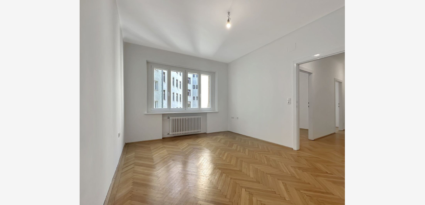 Zur Vermietung gelangt eine perfekt aufgeteilte 4-Zimmer-Wohnung in einem gepflegten Altbau in Top-Citylage im beliebten "Freihausviertel". Durch den zentralen Vorraum gelangt man in sämtliche Zimmer sowie in Küche, Bad und WC. Drei Zimmer sind in den ruhigen Innenhof orientiert. Ein Zimmer schaut in die Operngasse. Die Einbauküche ist mit Marken-Geräten ausgestattet (Geschirrspüler, Induktionskochfeld samt Backrohr sowie Umlufthaube). Das Badezimmer verfügt über eine verglaste Dusche, Waschbecken, Handtuchtrockner und Waschmaschinenanschluss. Spiegel und Lampe sind bereits vorhanden. Das WC ist separat. Der Immobilienmakler erklärt, dass er