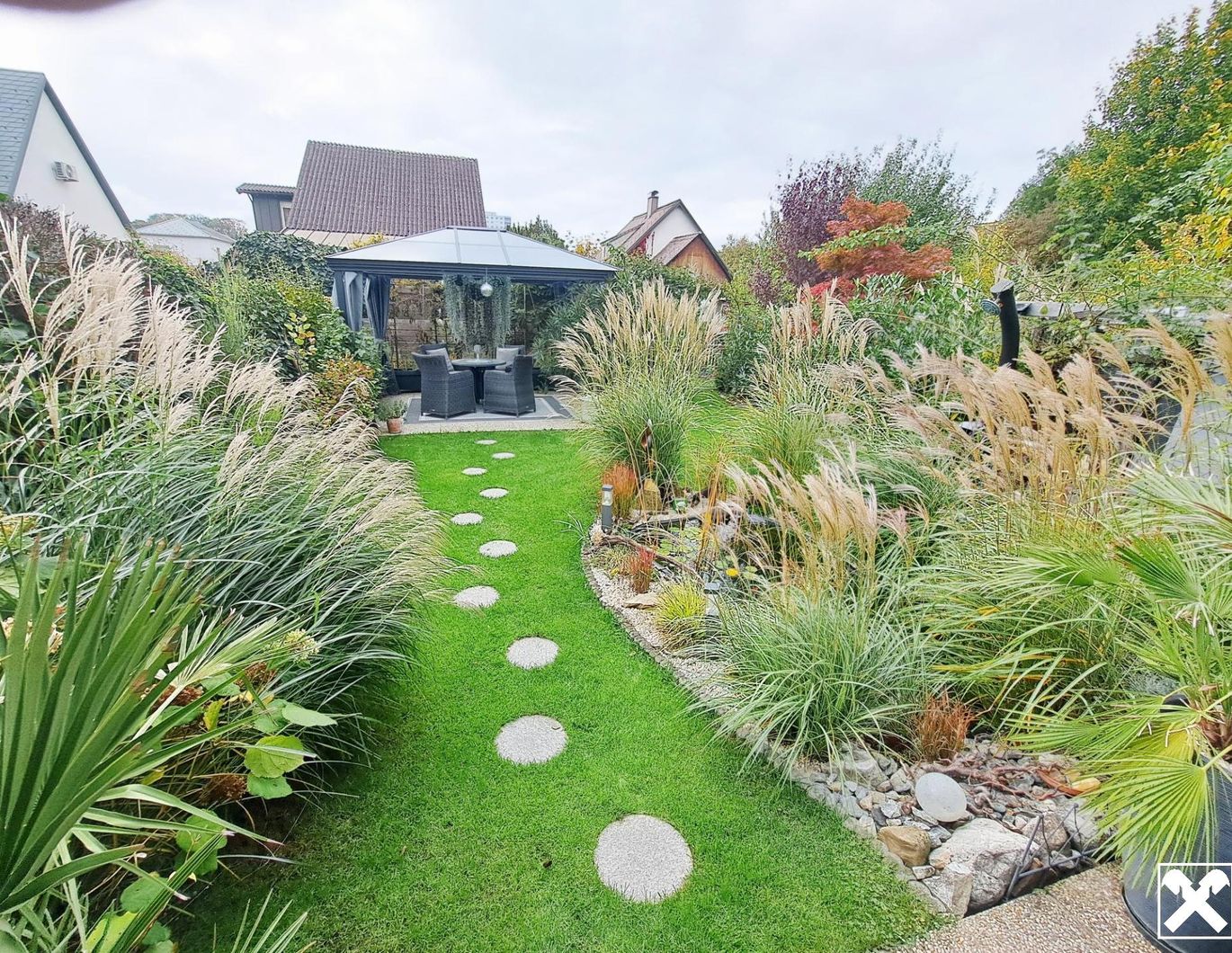 Der Außenbereich bietet einen wunderschön angelegten Garten und einen gepflegten Vorgarten.
