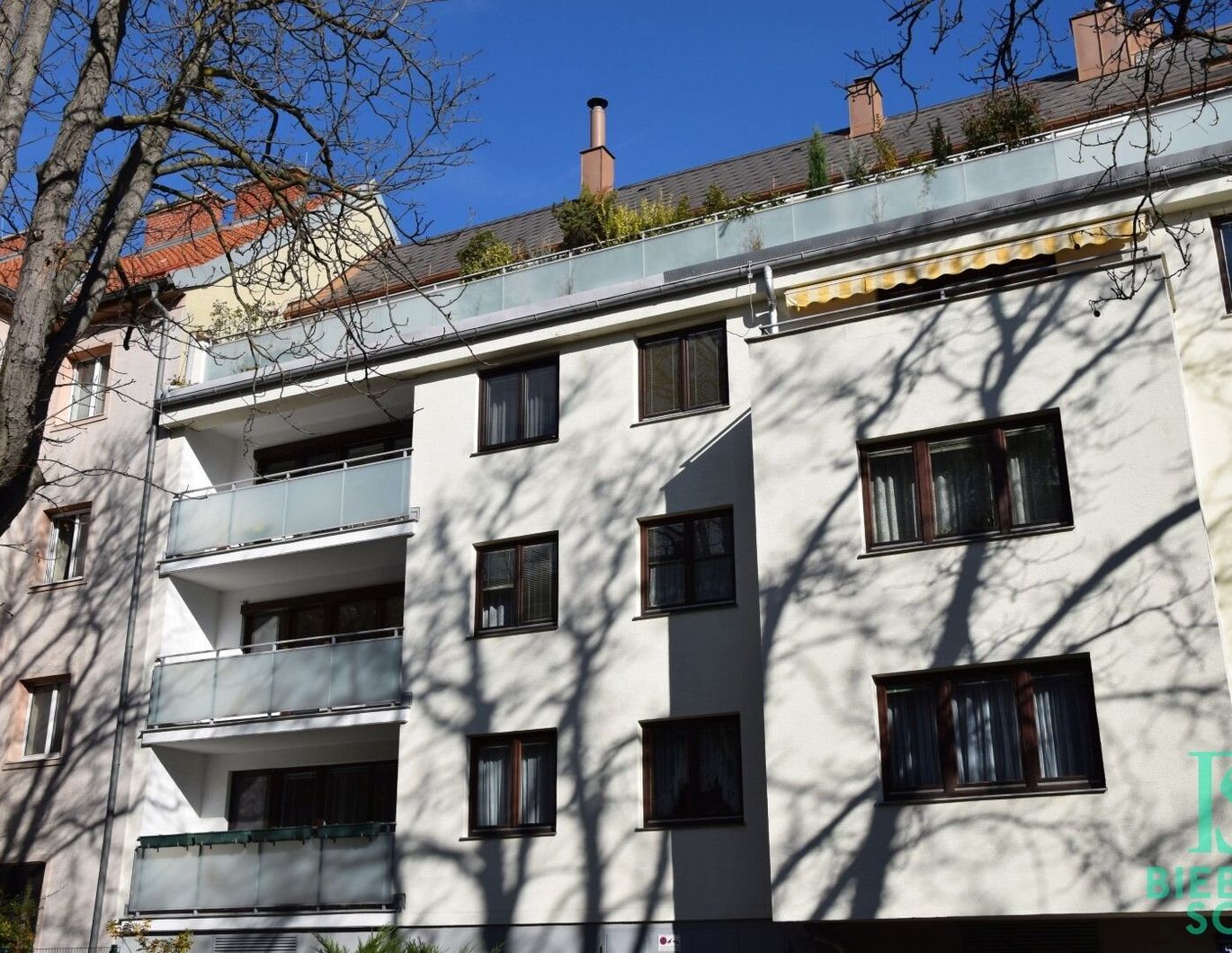 - so präsentiert sich diese ca. 117m² große Wohnung mit der nach Süden ausgerichteten, ca. 6m² messenden Loggia! Im 2. Liftstock gelegen, betritt man die Wohnung über einen großzügigen Vorraum mit eingebauter Garderobe, der in den sonnigen Wohnraum, mit Ausgang auf die Loggia, weiter führt. Sowohl vom Vorraum aus als auch vom Wohnraum aus gelangt man in den Flur, von dem aus die komplett ausgestattete Küche, drei Zimmer, das Duschbad, das Bad mit Wanne, ein separates WC und ein Abstellraum zu erreichen sind. Ein weiteres separates WC ist vom Vorraum aus zu betreten. Ein entzückender Sekretär ist im kleinen Dielen-Durchgang, als ehemalige Telefonablage, platziert. Die Einrichtung ist sehr gepflegt, die Einbaumöbel aus Vollholz und in einem der Zimmer, das auch als Büro Verwendung finden kann, ist ein Doppelschrankbett untergebracht. Die großflächige Fensterfront im Wohnraum wird zusätzlich zu den Innenrollos durch eine elektrischen Aussenrollo beschattet. Von der Küche aus sowie von den drei Zimmern aus hat man einen wunderbaren Grünblick und absolute Ruhelage! Sehr schöne Parkettböden in den Wohn- und Schlafräumen, in der Küche, dem Vorraum und in den sanitären Anlagen, den 80iger Jahren entsprechend moderne Fliesen, dem Stil angepasste Beleuchtungskörper, Gegensprechanlage, Kabelanschluß, Doppel-Verbundfenster mit Innenrollos sind die weiteren Ausstattungsmerkmale dieser wunderbaren, speziellen Wohnung! Die Heizung und Warmwasseraufbereitung erfolgt über die Hauszentralheizung, die monatlichen Kosten von EUR 213,80 sind bereits in der Miete enthalten! Die Wärmeabgabe erfolgt über Radiatoren. Den Bewohnern dieses Wohnhauses steht ein Partyraum, eine Sauna, eine Waschküche und ein Fahrradabstellraum zur Benützung zur Verfügung. Ein Kellerabteil ist der Wohnung zugeordnet. In der hauseigenen Garage sind 2 Parkplätze vorhanden, die, nach Bedarf, um je EUR 80,00/p.m. dazu gemietet werden können. Die