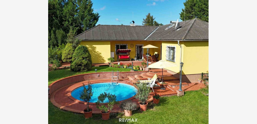 Der weitläufige Garten ist eine wahre Oase: Der schön gefertigte und fest integrierte Pool verspricht an heißen Sommertagen eine willkommene Abkühlung. Ein eigener Brunnen am Grundstück sorgt dabei für eine kosteneffiziente Bewässerung der Grünflächen. Auf der großzügigen Terrasse, die sowohl vom Wohnzimmer als auch vom Gang auf Höhe der Küche zugänglich ist, findet sich reichlich Platz für gesellige Stunden im Freien.