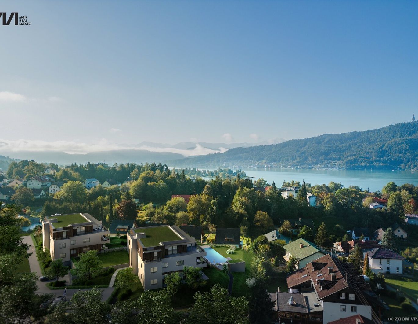 - sondern ankommen wollen. In einer der begehrtesten Hanglagen Pörtschachs eröffnet sich ein Rückzugsort, der das Gefühl ewiger Sommerfrische mit moderner Eleganz verbindet. Von jeder Wohnung fällt der Blick frei über den Wörthersee und die Karawanken; Bodentiefe Glasfronten fangen das Licht des Südens ein und schaffen fließende Übergänge zwischen Innen und Außen. Natürliche Materialien, klare Linien und fein abgestimmte Texturen verleihen den Räumen eine Atmosphäre von Ruhe und Substanz