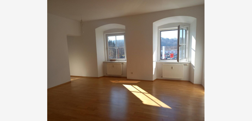 Diese geräumige 3-Zimmerwohnung befindet sich im Obergeschoß eines Geschäftshauses, direkt am Hauptplatz von Ilz. Sie verfügt über eine gute