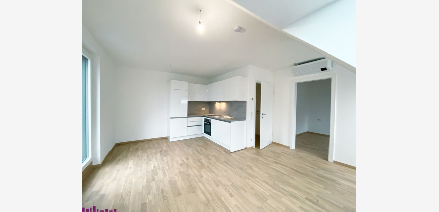 In unmittelbarer Umgebung des Badeteich Hirschstettens gelangt in einem top-modernen Neubau mit 34 Wohnungen (2 Baukörper a 17 Wohneinheiten) diese super aufgeteilte 2 Zimmer Wohnung zur Vermietung. Die Wohnhausanlage erschließt sich über zwei Regelgeschosse, sowie zwei Dachgeschosse.