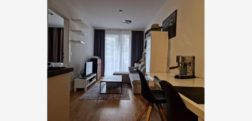 Die Wohnung mit 35m² befindet sich in einer sehr ruhigen Gegend mit Blickrichtung auf den Innenhof eines 2014 errichteten, modernen Wohnkomplexes. Zimmer: Vorraum, 1 Schlafzimmer, 1 Wohnküche, 1 Badezimmer, sowie ein 11m² großer Balkon mit 2 Zugängen (siehe Grundriss) 2. Stock mit Lift 1 Tiefgaragenplatz für 50€ monatlich optional Die Wohnung würde möbliert vermietet werden. Ausstattung: Waschmaschine, Garderobe, Couch, Arbeitstisch, komplette Küche, Bett (200x180cm)