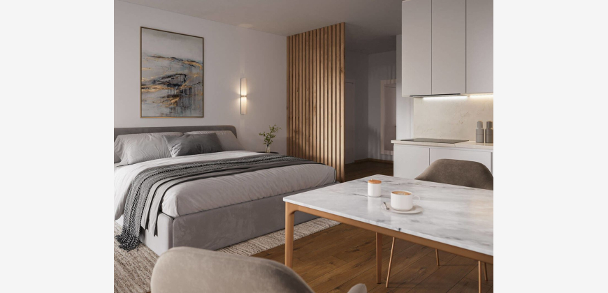 Aufteilung Top 1.2 (1 Zimmer + Terrasse, Garten) im EG: Vorraum, Abstellraum, Bad/WC, Wohnraum, Garten, Terrasse (südseitig) AUSSTATTUNGSHIGHLIGHTS: > Ziegelmassivbauweise > Wärmeversorgung für Warmwasser und Heizung mittels Luftwärmepumpe > Fußbodenheizung > elektronische Außenbeschattung (Raffstores) > hochwertiger Eichenparkett & Feinsteinzeug > hauseigene Tiefgarage mit Leerverrohrung für E-Ladestation > Fahrradabstellräume & Kinderwagenabstellräume > Vorbereitung der Klimaanlage bereits inkludiert! > Wohnungseingangstüren Sicherheitsklasse WK3 > hochwertige, stumpfeinschlagende Innentüren mit Stahlzarge