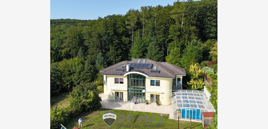 mit Ausblick auf den Wienerwald und einem direkt angrenzenden 8.000m² großen Waldstück. Der schöne Mischwald liegt direkt am Nordostrand von Gablitz am Königswinkelberg und ist vom nahegelegenen Parkplatz leicht zu Fuß oder mit einem Fahrzeug über eine Forststraße der Bundesforste erreichbar. Der grob geschätzt etwa 60-90 Jahre alte gut gewachsene Baumbestand setzt sich aus ca. 40% Buche, ca. 30% Lärche und ca. 30% Weißeiche zusammen. Vor 20 Jahren hat die letzte Durchforstung stattgefunden, sodass genug brennbares Material ohne Bedenken entnommen werden kann. Die Villa selbst verfügt über fast jeden erdenklichen Komfort und Luxus:
