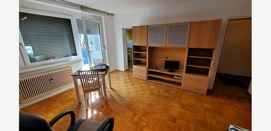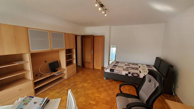 Grosses Zimmer [ca. 20+ m2], separate Kueche, Bad, Vorraum. Balkon. Kellerabteil und Stellplatz.
