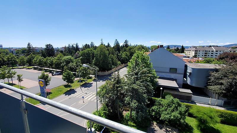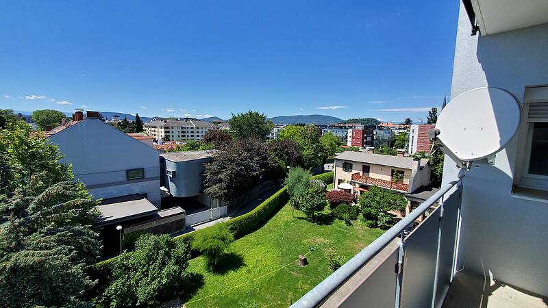 Garconniere im 4. OG. Blick nach Westen und Richtung Schlossberg.