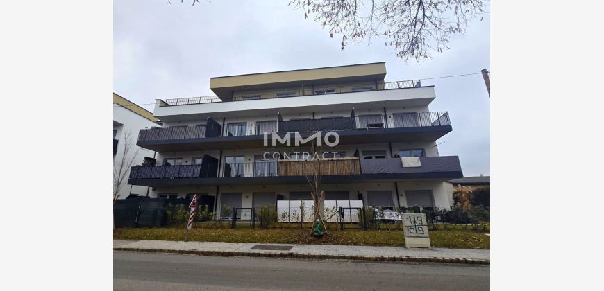 Vorraum, offene Wohnküche, Schlafzimmer, Bad, Toilette, Abstellraum, Kellerabteil, Balkon. AUSSTATTUNG : Die Wohnung ist mit hochwertigen Parkettböden im Wohn- und Schlafbereich, sowie modernen Fliesenböden im Sanitärbereich ausgestattet. Das Badezimmer verfügt unter anderem über eine Dusche und einem Waschmaschinenanschluss. Darüber hinaus verfügt die Wohnung über eine exklusive Einbauküche inklusive Elektrogeräte. Die Wohnung wird mittels Fernwärme beheizt. Das Warmwasser wird ebenfalls zentral über Fernwärme aufbereitet. Der Wohnung ist ein Kellerabteil zugeordnet.