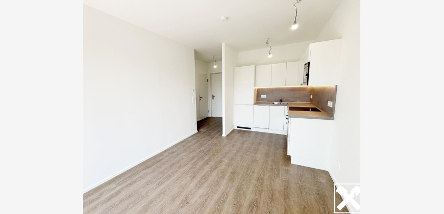 Diese kompakte Zweizimmerwohnung verfügt über ein Wohnesszimmer mit vollausgestatteter L-förmiger Küchenzeile, ein Schlafzimmer, ein Badezimmer, ein separates WC und einen Abstellraum, sowie einen zugeordneten Einlagerungsraum. Die bodentiefen Fenster sind als französische Balkone ausgeführt und erzeugen ein offenes Wohngefühl.