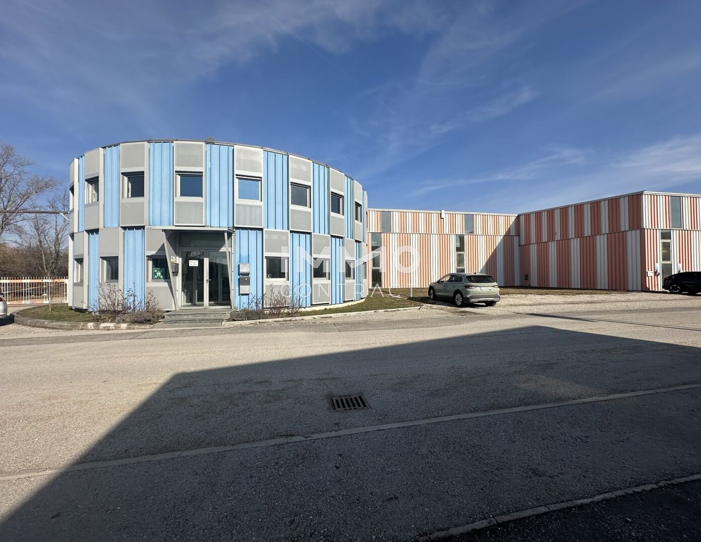 Industriehalle i m Gewerbepark Sierndorf mit ca. 1.637 m² Nutzfläche. Die Halle verfügt über Meisterkojen auf zwei Ebenen sowie einen Deckenkran und eignet sich für Produktion, Montage oder Lager.