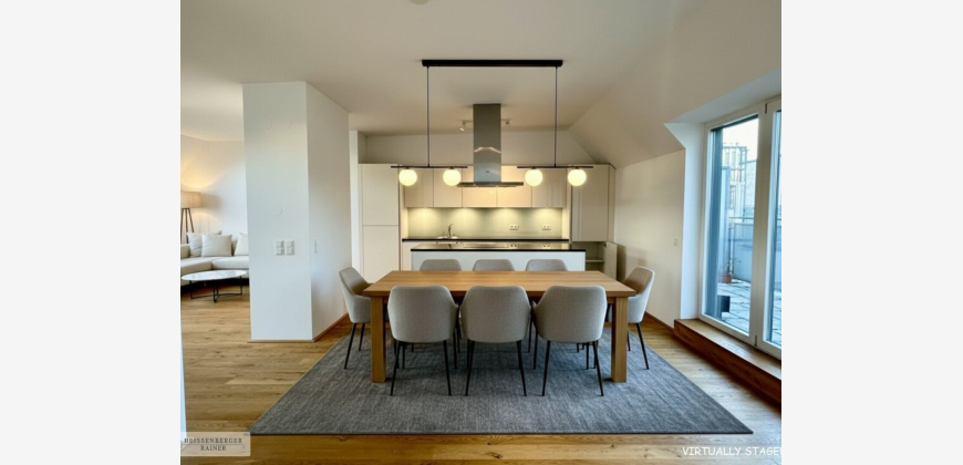 Diese sehr hochwertig und stilvoll ausgebaute Dachterrassenwohnung befindet im Dachgeschoss eines sehr repräsentativen Altbaus mit Palais-Charakter. Die Wohnung ist hell und offen gestaltet und eignet sich perfekt für großzügiges, modernes Wohnen am Puls der Stadt! Aufteilung: Ebene 1