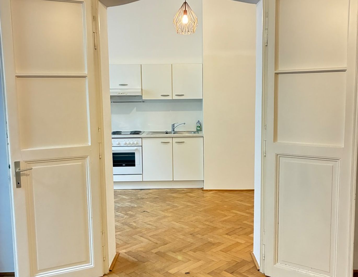 Schöne, geräumige Altbauwohnung mit 2 Zimmern, Küche/Wohnzimmer, großes Bad (mit Badewanne, Waschbecken, Waschmaschinenanschluss), WC (mit Waschbecken) und Vorraum auf 63m2 in einem Biedermeierhaus. Parkettböden, zwei getrennt begehbare Zimmer jeweils mit SAT- und Internetanschluss, Fernwärme. Ruhige zentrale