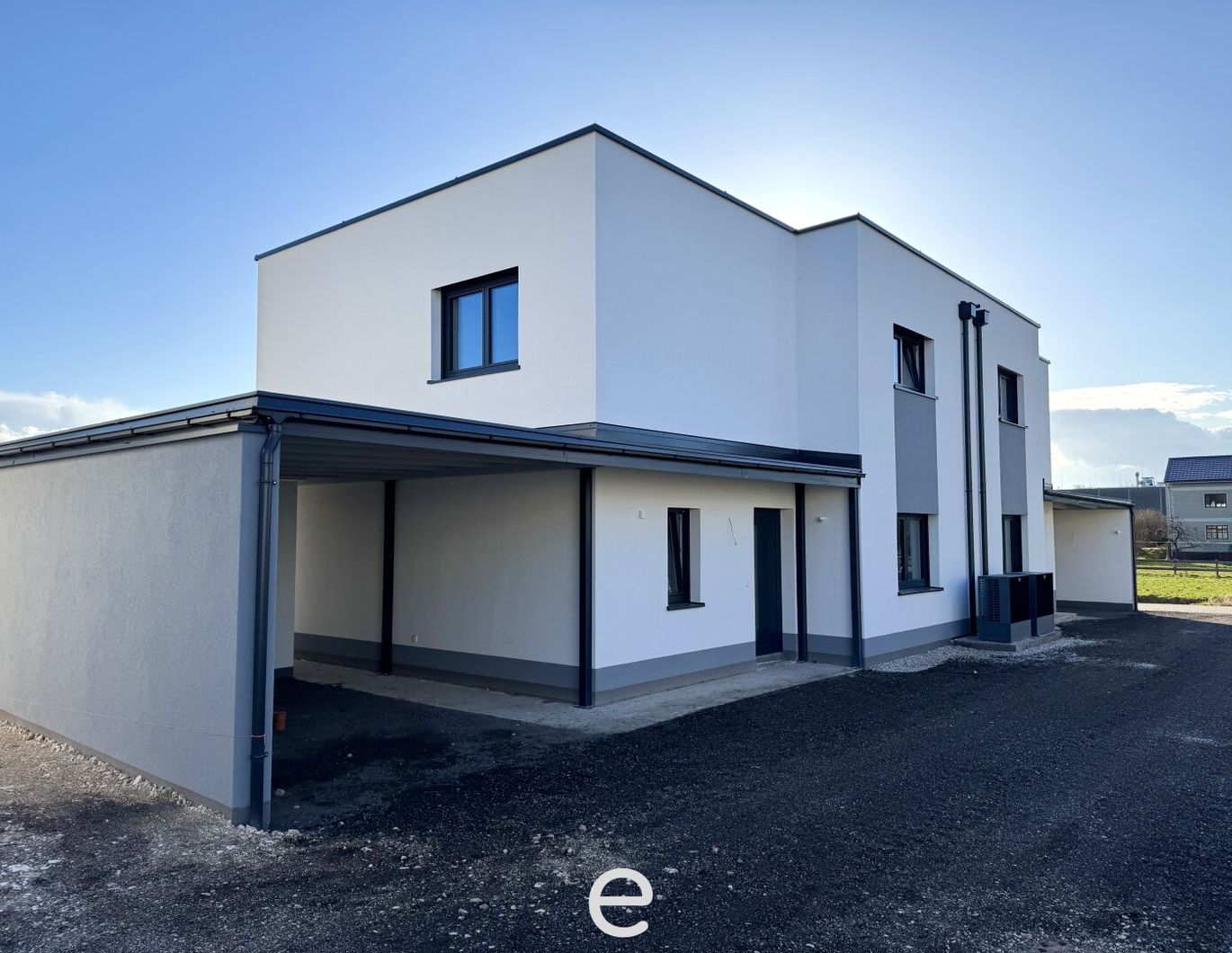 Hochwertige Ausstattung lt. Leistungsbeschreibung: 1 PA Viessmann Kompaktgerät Vitocal 222-S, Fußbodenheizung, betriebsfertige Elektroinstallation, hochwertige Sanitärrohinstallation, Kunststoff-Alu-Fenster mit Dreifach-Verglasung, elektrischer Sonnenschutz, Malerarbeiten, PV-Anlage 5,4 kWp...