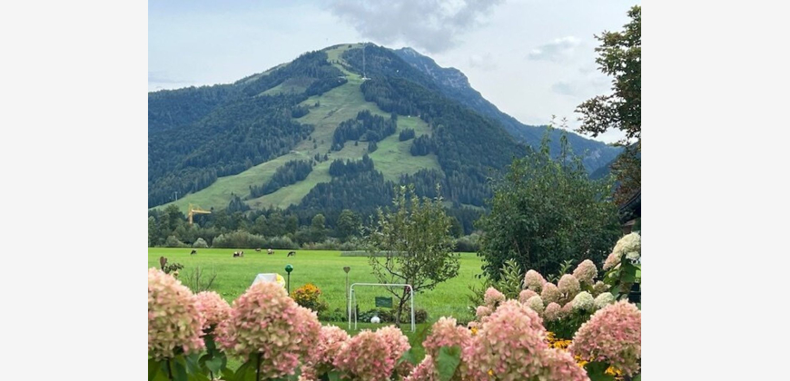 Wohnen wo andere Urlaub machen. Im Tiroler Urlaubsort Kössen finden Sie eine großzügige 4,5 Zimmer Gartenwohnung, in ruhiger Umgebung, am Ende einer verkehrsberuhigten Zufahrtsstraße, mit großer Terrasse und Gartenanteil. Das Grundstück grenzt an eine weitläufige Wiese, Sie genießen den Blick auf die umliegende Bergwelt. Kössen, als größter Ort in der Urlaubsregion Kaiserwinkl, neben Walchsee, Schwendt und Rettenschöss, angrenzend an Bayern zwischen den Chiemgauer Alpen im Norden und dem Tiroler Kaisergebirge im Süden. Ein Eldorado für flugbegeisterete Drachenflieger und Mountainbiker bietet Kössen reizvolle Almen- und Wanderwege, und ebenso im Winter viele Möglichkeiten Wintersport, vor allem Langlauf zu betreiben. Gute