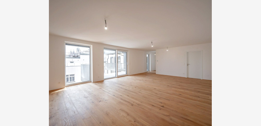 Zur Vermietung steht eine ca. 101m² große, neu errichtete 4-Zimmer-Wohnung mit Balkon in einem gepflegten Altbau. Die Wohnung befindet sich im 4. Stock und wird als Erstbezug angeboten. Die Fertigstellung des Dachgeschossausbaus ist für 01.09.2025 geplant.
