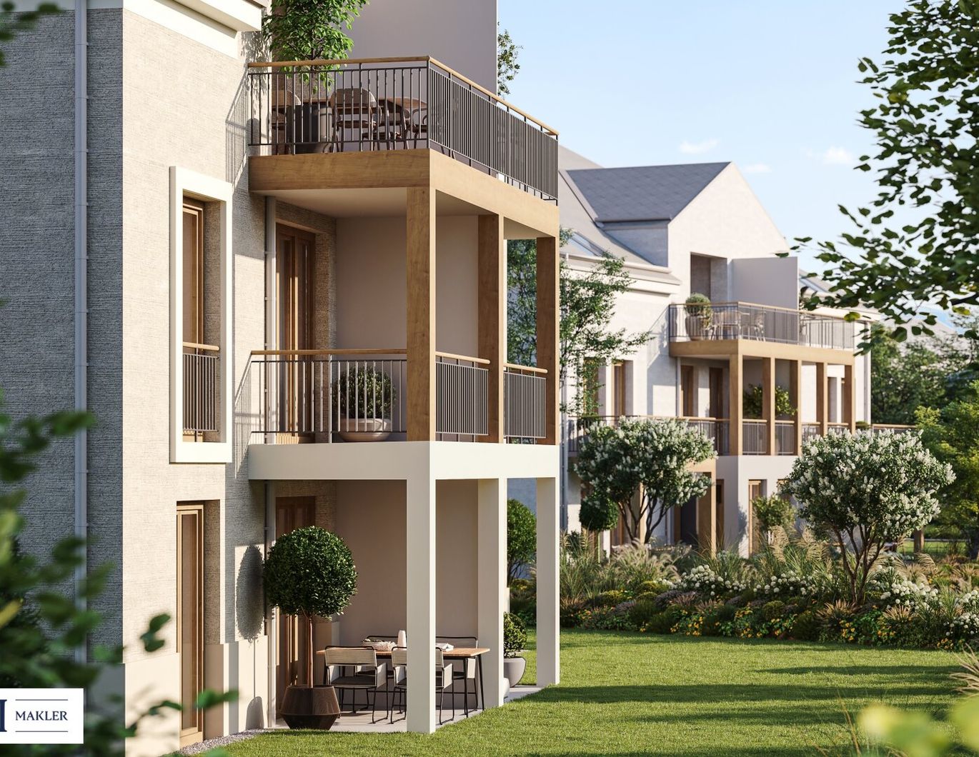 Auf zwei elegante Stadtvillen teilen sich insgesamt 16 Luxus-Eigentumswohnungen auf, jeweils mit einladenden Freiflächen wie Gärten, Balkone oder Terrassen, auf.