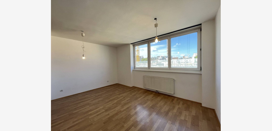 Die ca. 48 m² große Wohnung befindet sich im 6. Obergeschoss und gliedert sich in einen Vorraum, einen Wohnraum, ein Schlafzimmer, einen Abstellraum, ein Badezimmer und eine separate Toilette .