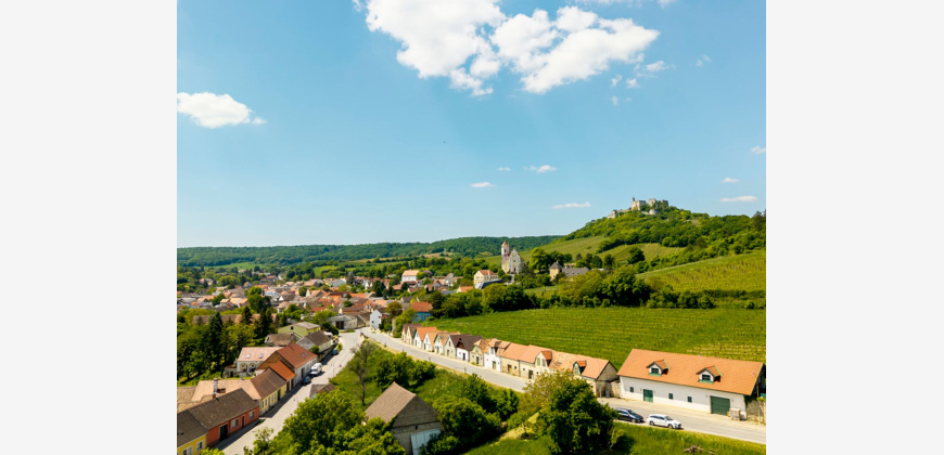 Objektnummer: 4524 Schon von Weitem sieht man die markante Burgruine, die über dem idyllischen Ort Falkenstein thront. Falkenstein, ein kleiner Ort in der Nähe von Poysdorf, ist bekannt für sein typisches Weinviertler Flair und die Herzlichkeit seiner Bewohner. Eingebettet in diesen Ort befindet sich dieses bezaubernde Anwesen, das zur Jahrhundertwende errichtet wurde. Dicke Steinmauern umgeben die ca. 65 m² großen Wohnräume. Ein großer Vorraum mit gemütlicher Sitzecke heißt die Besucher willkommen, und gibt den Weg ins geräumige Wohnzimmer frei. Die großen Fenster lassen Licht und Luft in den Raum, der Holzofen sorgt in der kühleren Jahreszeit für wohlige Wärme. Daran angrenzend das Schlafzimmer, welches für angenehme Nachtruhe sorgt. Das Haus verfügt über eine helle, gut ausgestattete Küche mit Sitzplatz, Das Badezimmer besitzt eine große Dusche, Waschbecken sowie einen Handtuchwärmer. Ein separates WC komplettiert die Wohnebene. Beheizt wird sie mittels Gaszentralheizung. Der Außenbereich verfügt über einen 415 m² großen, romantischen Garten in dem sich 2 Terrassen befinden. Diese laden zum gemütlichen Sitzen und entspannen ein, eine große Markise sorgt für die entsprechende Beschattung. Ein ganz besonderes Highlight dieses Objekts ist der ca. 100 m² große, ebenerdige Raum , welcher sich fantastisch als Loft,- Atelier udgl. gestalten lässt. Derzeit befindet sich hier eine Vinothek , ausgestattet mit Sitzgelegenheiten ,Gastronomieschank , Wc`s . Alte Gewölbedecken welche indirekt beleuchtet sind, eine große gemauerte Steinröhre mit Sitzplätzen und natürlich ausreichend Platz um die Schätze des Weinviertels einzulagern und die eigene Weinsammlung zu erschaffen. Ein extra Nebengebäude, mit einer Fläche von etwa 32 qm dient als Keller-Ersatz. Am Ende des Grundstückes gibt es eine eigene Zufahrt, wo die Möglichkeit der Errichtung einer Garage bzw. eines Carports besteht. Wir freuen uns, Ihnen dieses ganz besondere Ensemble anbieten zu dürfen. Flächenangaben laut Plan