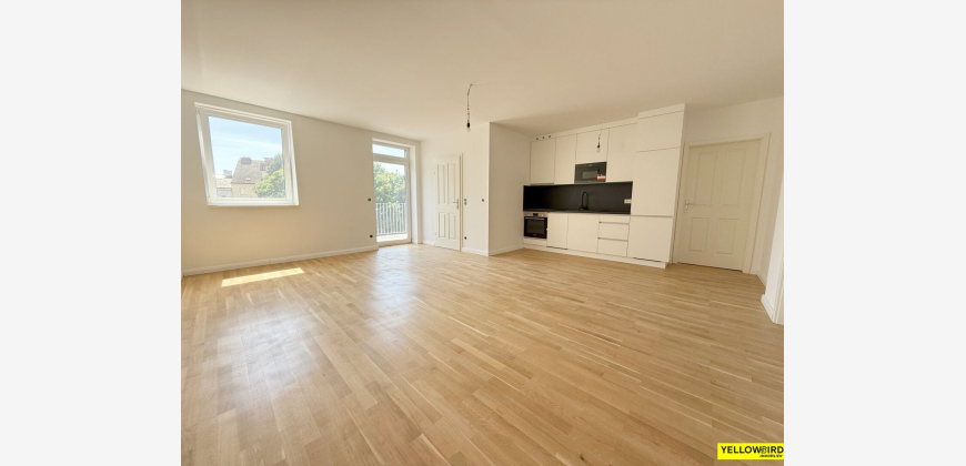 Diese hochwertige Etagenwohnung im 21. Bezirk bietet auf 64.24 m² Wohnfläche ein durchdachtes Raumkonzept mit lichtdurchfluteter Wohnküche, sowie einem herrlichen Südbalkon. Hochwertige Parkettböden, Fußbodenheizung und zwei WCs sorgen für Wohnkomfort. Die
