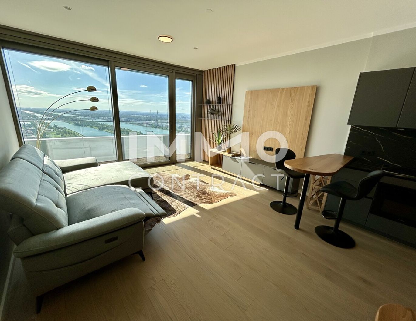 Möbliertes Apartment im 42. Stock mit Weitblick auf die Donau! Pool, Spa und Fitness inklusive!